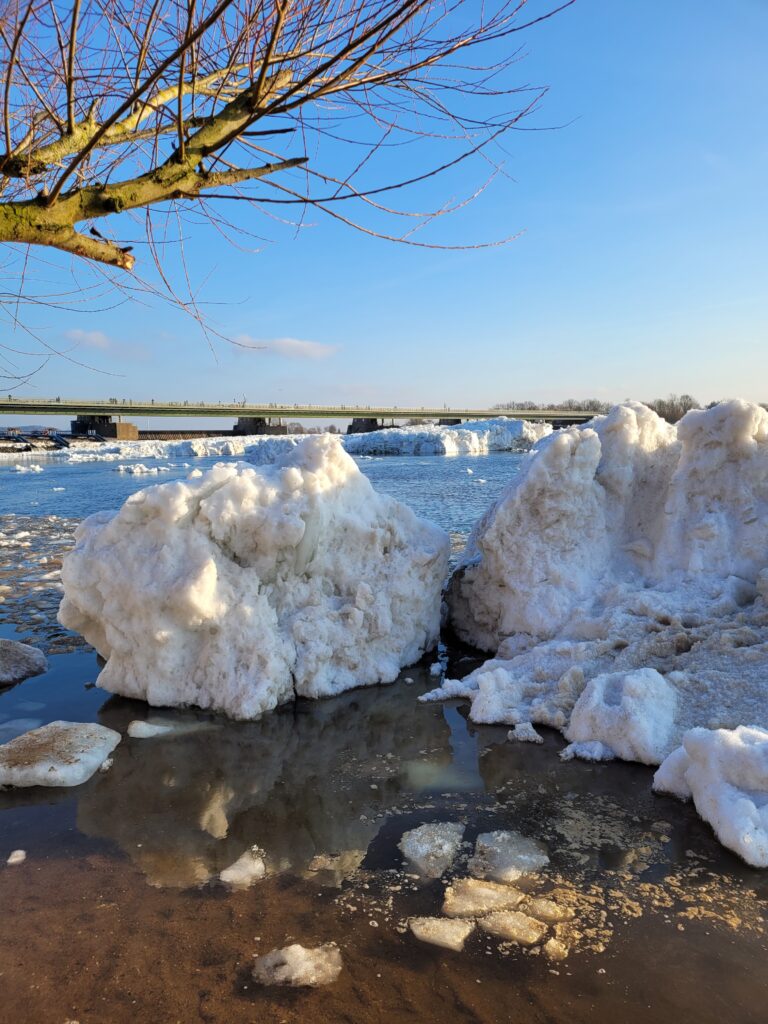 Aktuell sind besonders die Nächte in großen Teilen des Elblaufs wieder frostig kalt und das wird sich zumindest bis Ende kommender Woche wohl auch nicht großartig ändern. Deshalb muss weiterhin mit Eisbildung und weiterem Treibeis gerechnet werden.