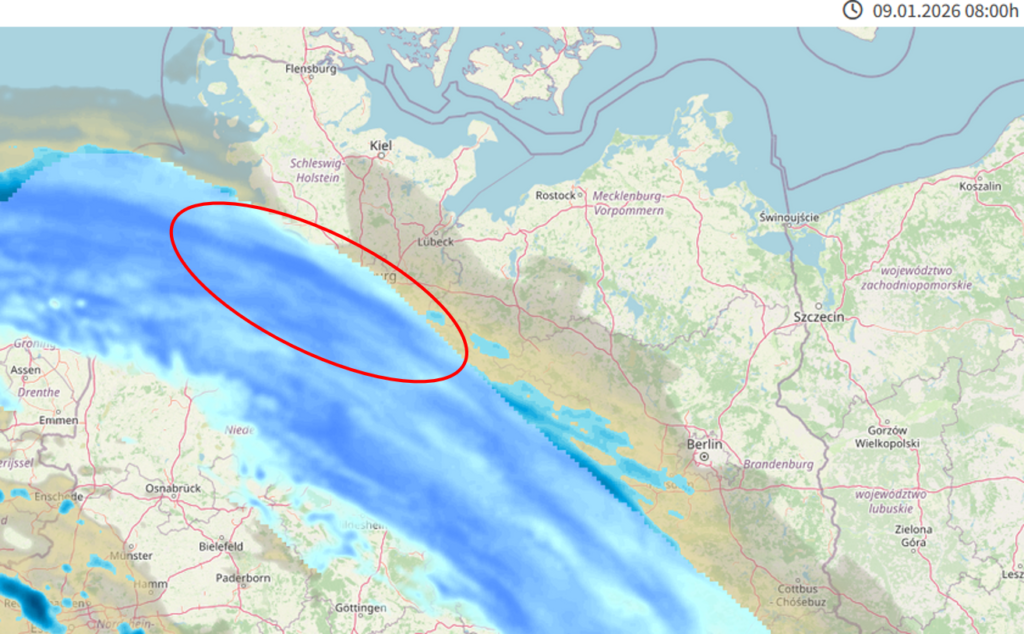 • Elbraum & Westküste SH: Zum frühen Morgen erst Schnee (ca. 06:00h), zum frühen Nachmittag dann ggf. gefrierender Regen – ca. 12/13:00h von Westen)